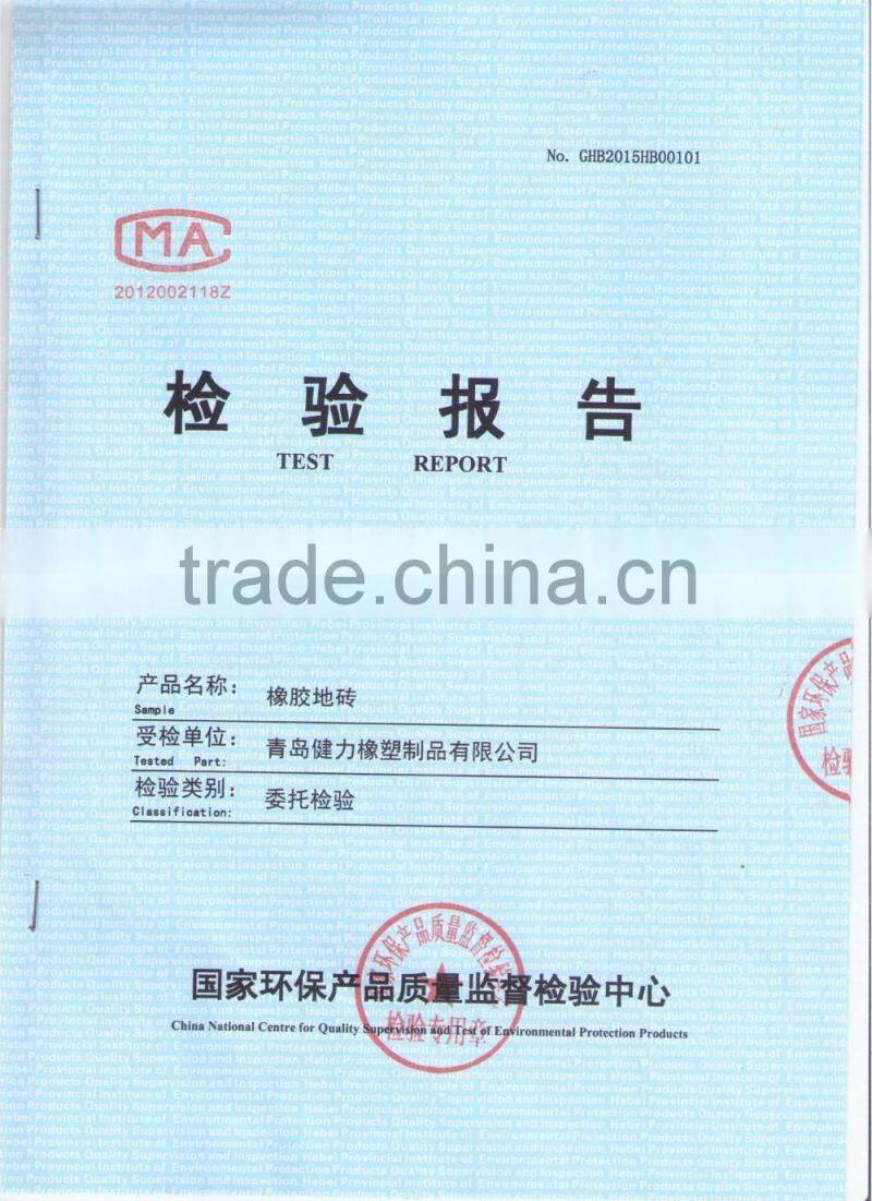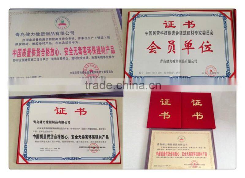 Qingdao Jianli Rubber & Plastic Products Co., Ltd. is a research, production and construction as one of professional rubber manufacturing company. The company has over 10 years of experience in the production.The rubber products are on behalf of the advanced level, and provides many well-known professional fitness club  ground services, were loved by the customers. The products processed with high-density rubber surface layer with rubber granules, have features of nontoxic, flexible, wear-resistant, durable, heat insulation, sound insulation, fire-retardant,environmentally friendly, easy to clean, not easy to broke, can bear high temperature, not easily deformed, elegant appearance,etc. Can be customized with a variety of colors.Funtion as weight area in the gym and private education room.