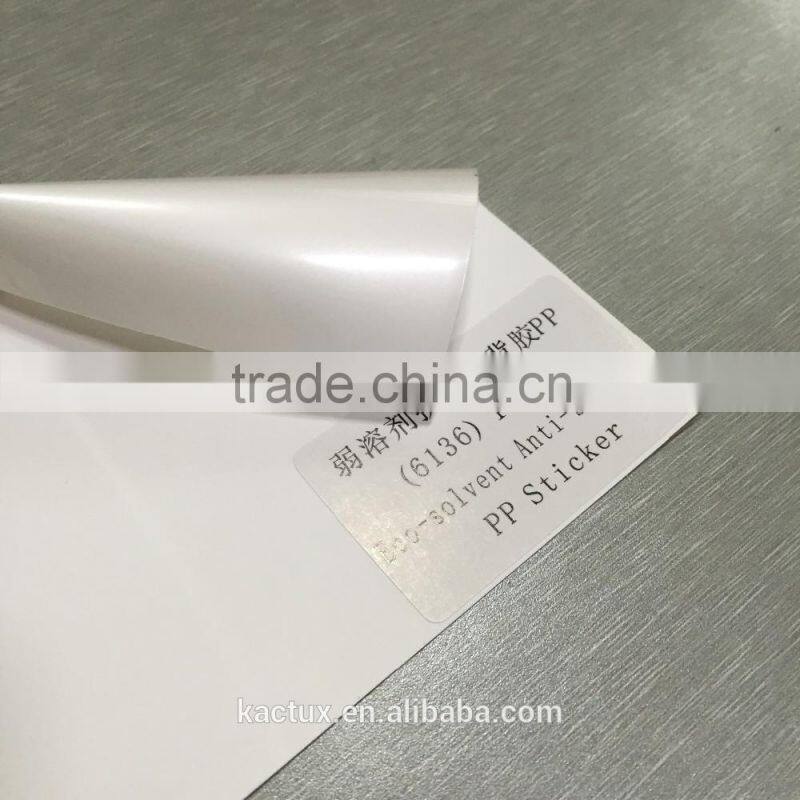 PP Sticker, the substrate is pp, on the surface of which there is a layer of immersion coating and the reverse side is processed by PP. It is equipped with excellent absorbency and its printing color is bright, natural and vivis, which is one of common products in the media advertisement lines.