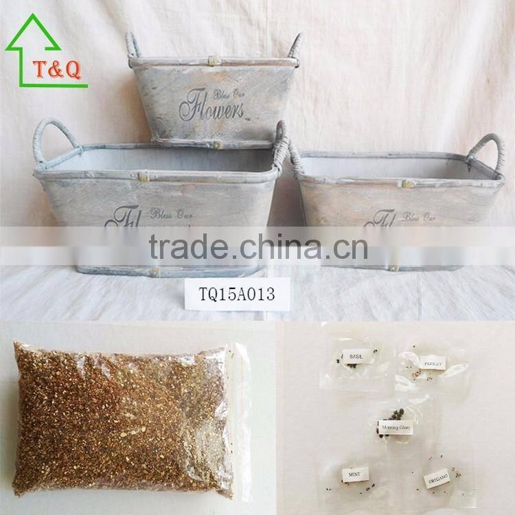 3 Set Tin Pot Tray Garden Porch Windowsill Metal Plant Pot With Seeds