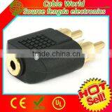 Factory Wholesale 3.5mm to 2 RCA Adapter Female to Female Connector