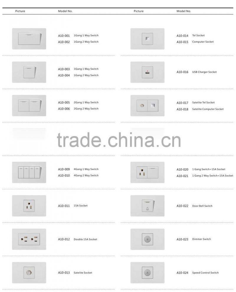 Special PC Material White Color 1 Gang 1 Way Wall Switch And Socket