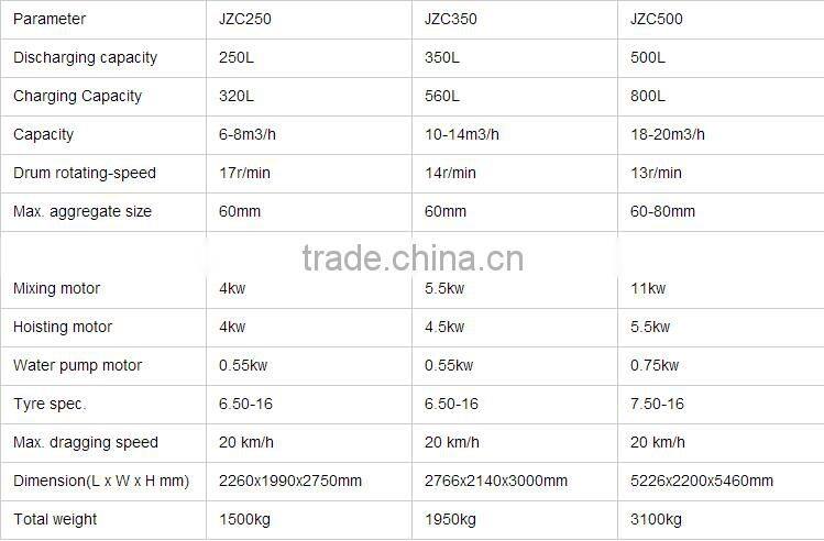 2016 Professional Design JZC350 0.35m3 Building Construction Concrete Mixer With Low Price