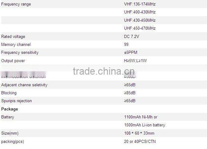 High Quality walkie talkie 5W rugged walkie talkie specifications