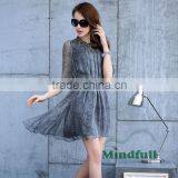 Retail One-Piece Gray Half Sleeve Summer Women 100% Natural Silk Dress in Stock