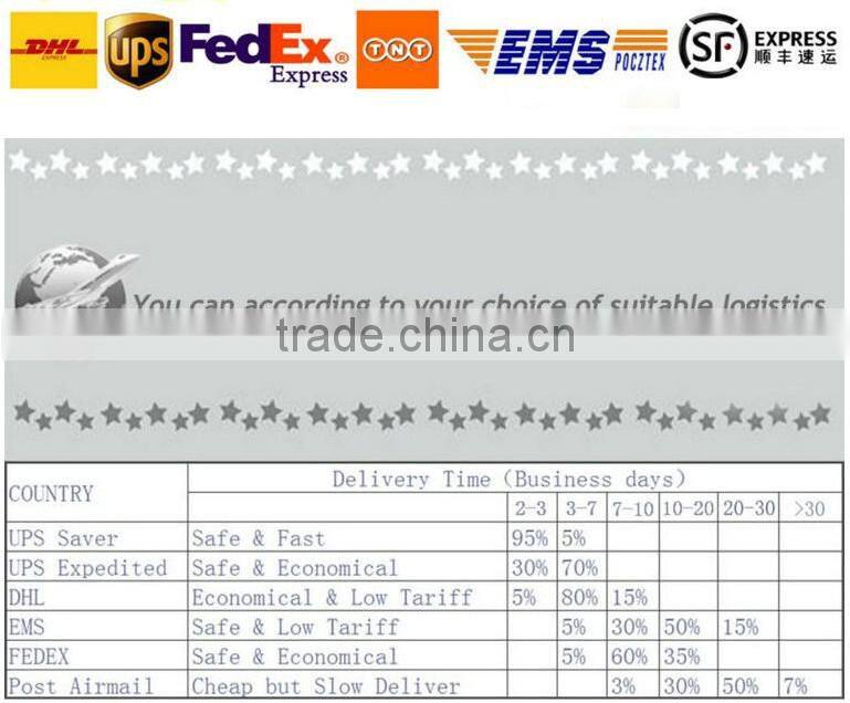 | Shipping | 1. Effected by methods of DHL, UPS, EMS, FEDEX, TNT 2.Fast delivery, usually within 7-15 days after payment |