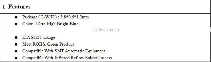 | Emitting Color | Blue | Luminous Intensity | 560mcd | |