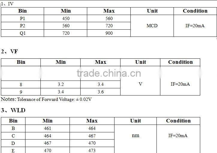 | Color Temperature | 460-470nm | Operating Temperature(℃) | -30, 85 | |