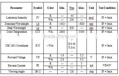 | Emitting Color | Other, red Warm white | Luminous Intensity | Customers' Requirements | |