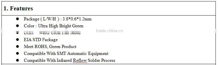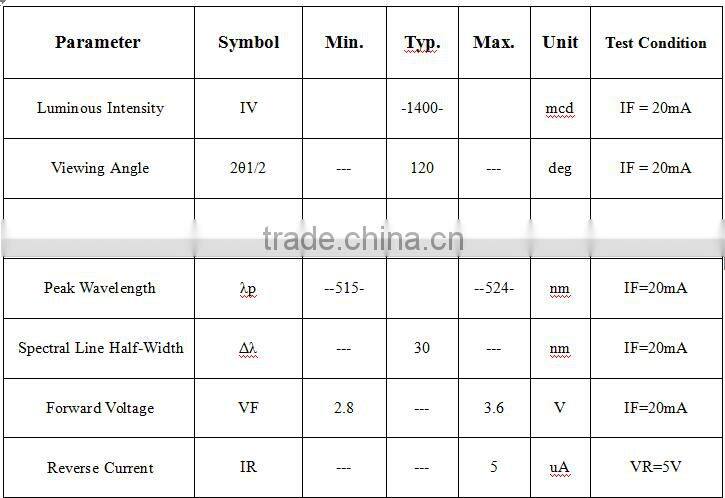 | Emitting Color | Green | Luminous Intensity | Customers' Requirements | |