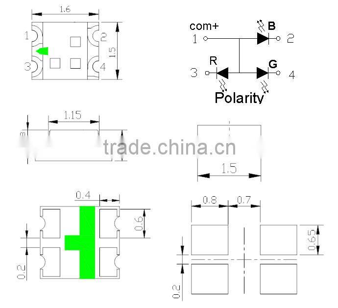 l Package ( L/W/H ) :1.6×1.5×0.55 mm l Color : Ultra Bright RGB Full Color l Lens: Water Clear Flat Mold l EIA STD Package l Meet ROHS, Green Product l Compatible With SMT Automatic Equipment l Compatible With Infrared Reflow Solder Process |