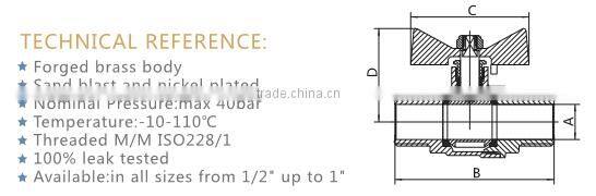 ART.1019 cheap dn 15 20 25 gas/water/oil media and manual power m/m thread screw type brass mini ball valve with nickel coating