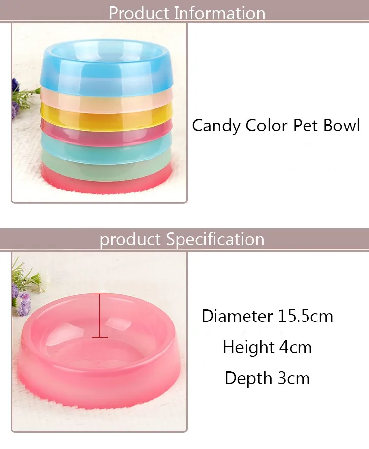 Candy Color Plastic Pet Bowl for Dog Food Bowl Designer Cat Food Bowls