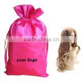 Wholesale China Luxury Drawstring Closure Satin Hair Extensions Bag With Customzied Logo Printed