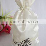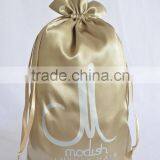 Gold Printing Satin Hair Extensions Packing Bag Drawstring