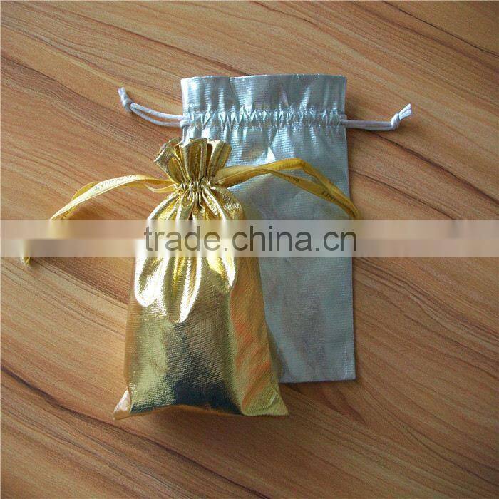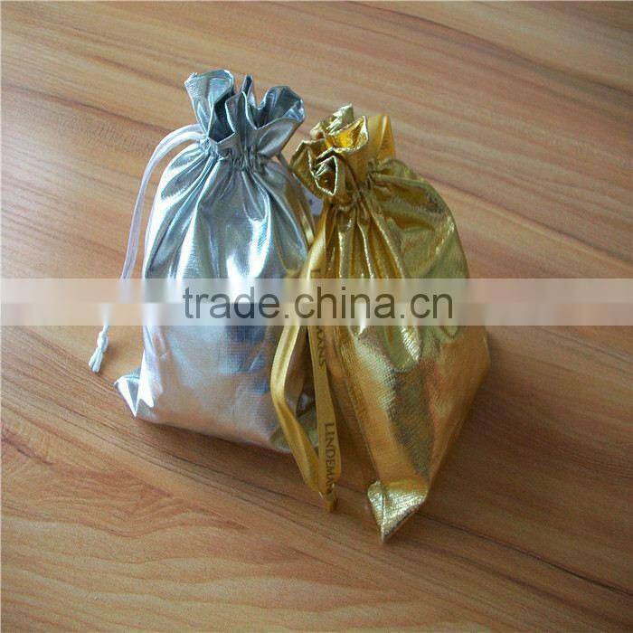 Small Metallic Fabric Drawstring Bags With Printed Logo/custom Metallic Fabric Jewelry Bag/metallic Fabric Bag With Printing