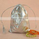 Shiny Metallic Silver Color Drawstring Pouches With Tassels