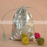 Shiny Metallic Silver Color Drawstring Pouches With Tassels