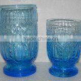 SOLID BLUE COLOR FLOWER GLASS TUMBLER