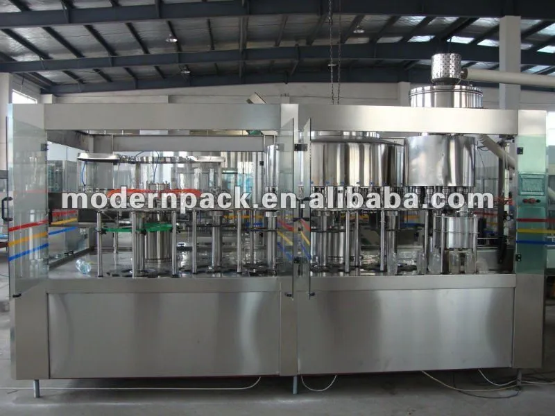 The machine is a full-automatic multiple-function washing, filling and capping unit. It is used in washing. filling and sealing all kinds of non-air drinks such as milk, fruit juice, oil & vinegar,wine,fruit wine, mineral water and pure water. The line has features of unique design,new style, complete functions,multi-purpose, convenient in operation, beautiful construction, high automaticity. It is the best filling equipment in China.