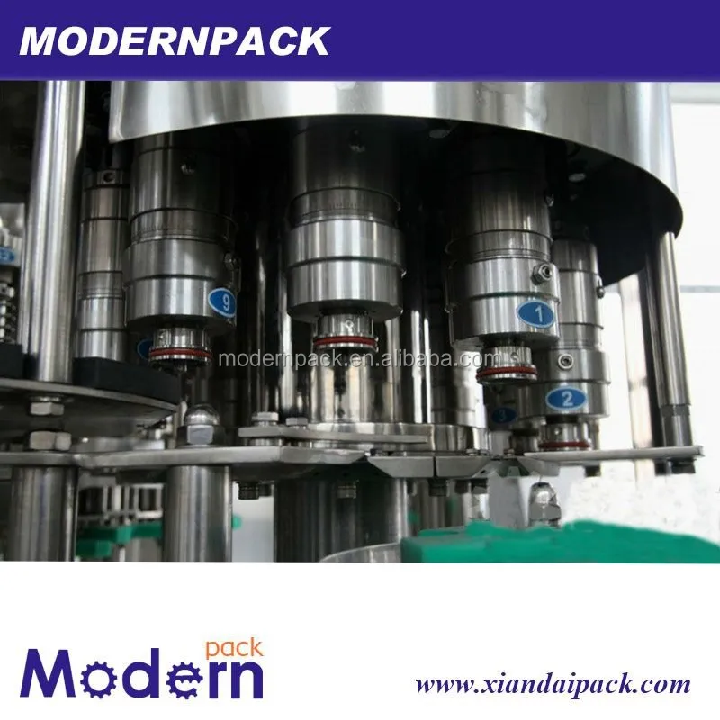 The machine is a full-automatic multiple-function washing, filling and capping unit. It is used in washing. filling and sealing all kinds of non-air drinks such as milk, fruit juice, oil & vinegar,wine,fruit wine, mineral water and pure water. The line has features of unique design,new style, complete functions,multi-purpose, convenient in operation, beautiful construction, high automaticity. It is the best filling equipment in China.