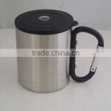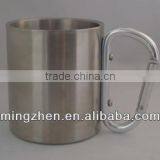 220ml Double Wall Steel Coffee Mug With Carabine Handle