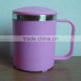 3.The color is transparent, red, yellow, blue,white,pink you can be opioned.double wall mug,stainless steel inner,high quality