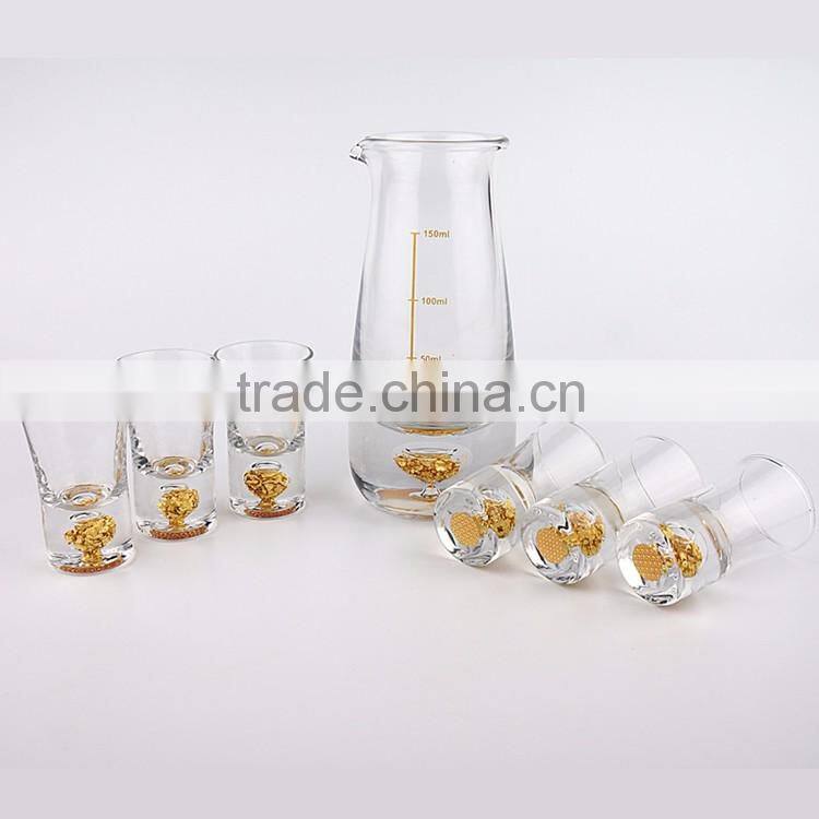 6 Pcs 1 Pot 200 - 300ml Bullet Spirit Glass Novelty Gold Flakes Cheap Shot Glass
