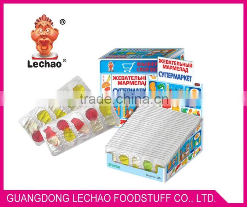 | Material | Glucose Syrup, Granulated Sugar, Gelatin, Citric Acid, Malic Acid, Agar, Sodium Citrate, Sorbitol, Glazing Agent, Vegetable Oil, Edible Colorant, Edible Flavor. |