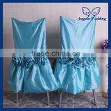 CH030A Hot Sale Fancy Wedding Ruffled Taffeta Turquoise Blue Chair Covers With Flower