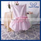 CH046D Cheap Wedding Chiffon and Satin Flower Decorated Universal Ruffled Blush Pink Banquet Chair Cover