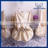 CH030H Ruched Wedding Champagne Taffeta Chair Covers With Rose