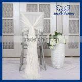 CH023A New Arrival 2015 Custom Made Fancy Lace and Organza Ruffled Curly Willow White Wedding Chair Covers