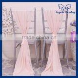 SH004E Cheap Elegant Fancy Wedding Blush Pink Chiffon Chair Sash With Ribbon