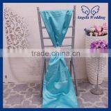 SH005F Nice Cheap Wedding Tiffany Blue Satin Chair Sash With Flower