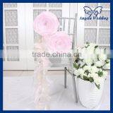CH091A Wholesale Hot Sale Elegant Fancy Wedding Decoration Organza Pink Chair Flower With Crytsal