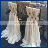 SH008A Wholesale Cheap Fancy Wedding Polyester Ruffle Ivory Chiffon Chair Sash