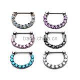 Surgical Steel Septum Clickers With Prong Set CZ Gems