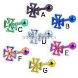 Titanium Anodized CrossTongue Ring Body Piercing Jewelry