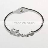 Stainless Steel Leather Bracelet With Crystal Charm