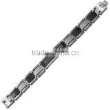 Stainless Steel Bracelet - Black Platted Cross ID Bracelet With Carbon Fiber