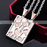 Stainless Steel Couple Pendant- Rose Gold IP-plated Love Heart Couple Pendant