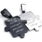 Stainless Steel Couple Pendant- Steel and Black IP-plated Puzzel Design Pendant