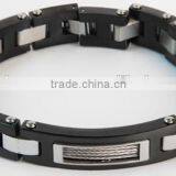 Stainless Steel Bracelet - Black Platted Brushed Metal H Links With 5 Cable Inserts With Bright Finished Rectangle Shaped Joiner