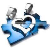 Stainless Steel Couple Pendant- Blue IP-plated Puzzel Design Pendant