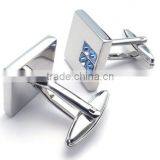 Stainless Steel Polished Cuff Links With Blue Glass on it