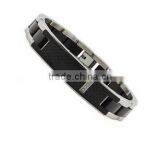 Stainless Steel Hot Selling Polished Black Carbon Fiber ID Bracelet W/ Little Gems