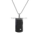 Stainless Steel Pendant- Dog Tag Type Pendant Carbon Fiber Inlay With a Little Gem