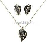 Stainless Steel Necklace and Earring Sets: Half Love With Leaves Design