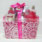 Nice Fragrance Bath Set 170ml Shower Gel Bubble Bath and 70ml Body Lotion 100g Soap Fizzer With Bamboo Basket