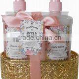 High Quality Hot Sale Bath Set Shower Gel Body Lotion With Nice Scent and Wire Basket